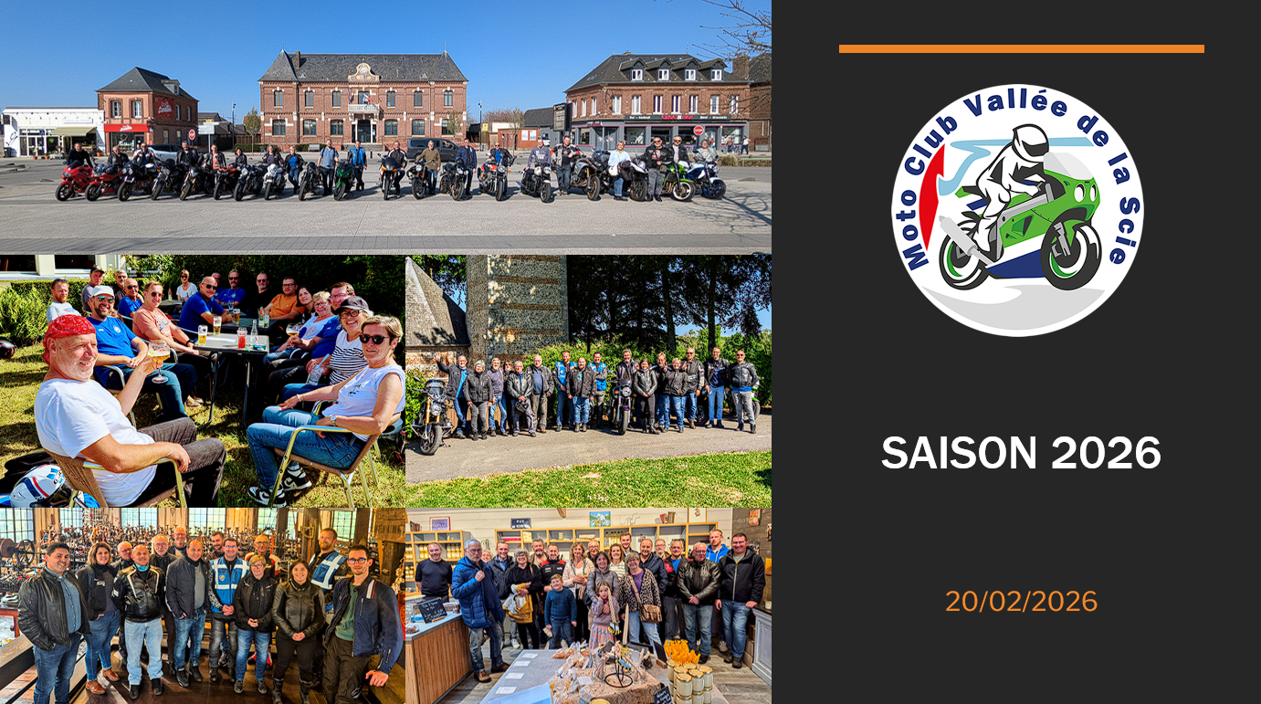 Chers motards et futures motardes du club, La saison 2026 du Moto Club démarre en fanfare ! Rendez-vous le 20 février à 18h30 à la …